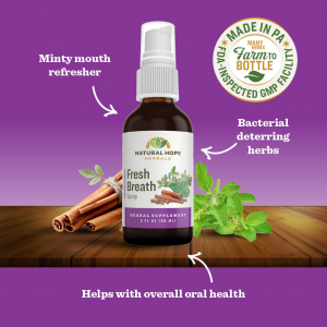 Keep your friends close – freshen your breath with a spray or two of Natural Hope Herbals Fresh Breath, before going to town or church. Fresh Breath Spray is comprised of herbs traditionally used to keep the mouth moist and breath sweet.