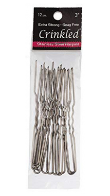 12 pack of 3inch, stainless steel, crinkled hairpins.