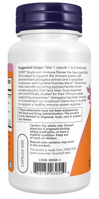 NOW® Mushroom Immune Renew has been specifically formulated to support the immune system with standardized astragalus extract and a specialized mushroom and mycelial biomass blend.* Mushroom have naturally occurring polysaccharides known as beta-glucans that have been long respected and scientifically studied for their immune system supporting properties.* Astragalus has been included to complement our mushroom blend due to its ability to support a healthy immune system response.*